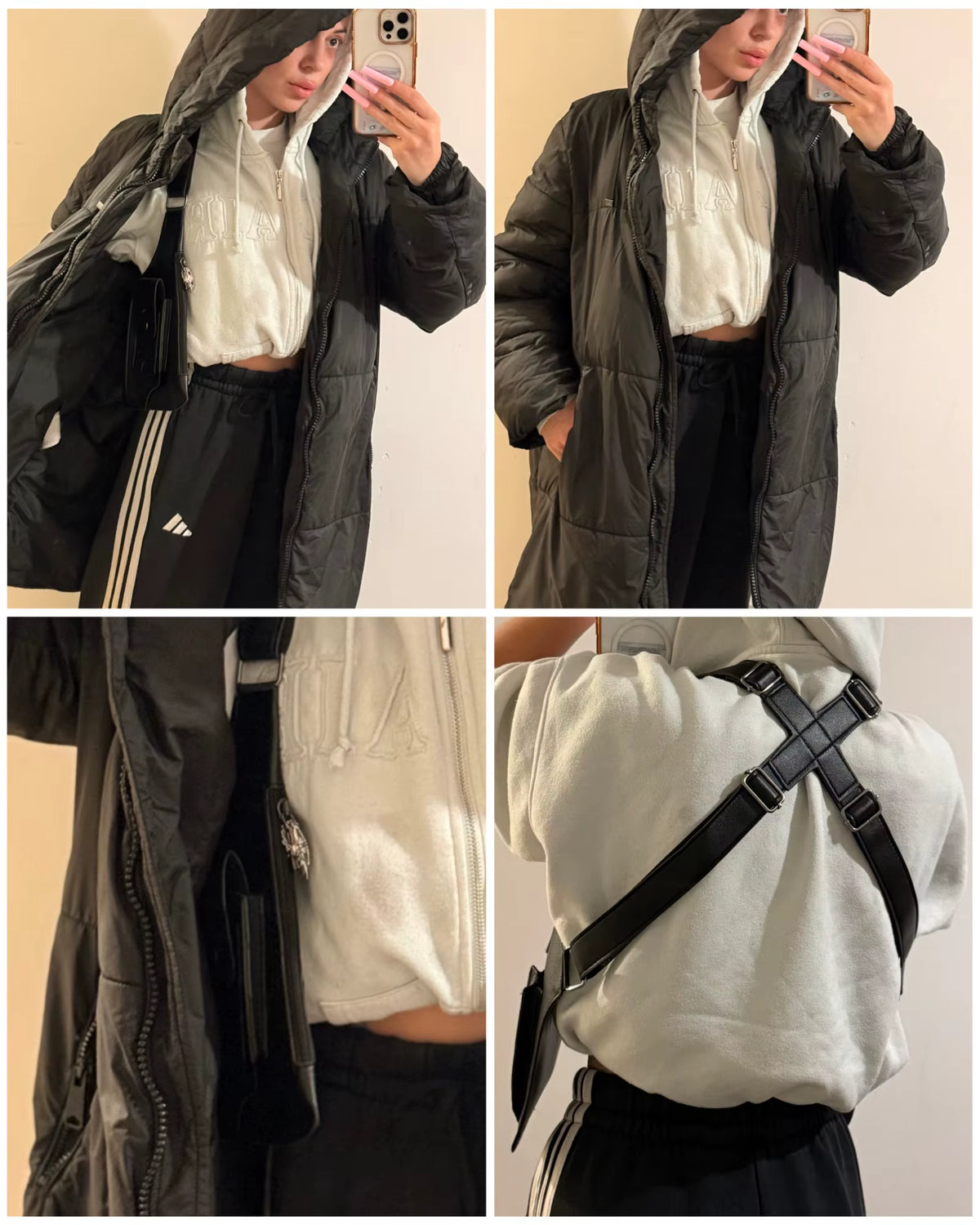 Lösningen: Väskan sitter tryggt mot bröstet. Du har full koll på dina grejer och den ryms osynligt under jackan.